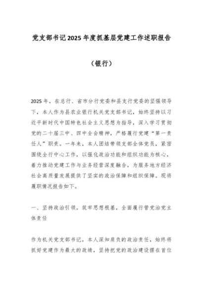 【七哥公文】2025年:党支部书记2025年度抓基层党建工作述职报告(银行)_副本+更多免费公文+VX:QiGeGongWen2024