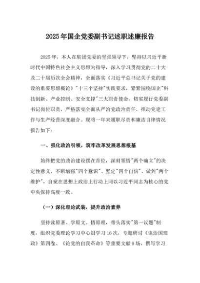 / 【七哥公文】2025年:2025年国企党委副书记述职述廉报告_副本+更多免费公文+VX:QiGeGongWen2024