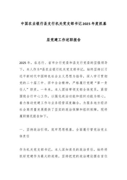 【七哥公文】2025年:中国农业银行县支行机关党支部书记2025年度抓基层党建工作述职报告_副本+更多免费公文+VX:QiGeGongWen2024