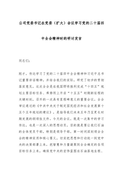【七哥公文】2025年:公司党委书记在党委(扩大)会议学习党的二十届四中全会精神时的研讨发言_副本+更多免费公文+VX:QiGeGongWen2024