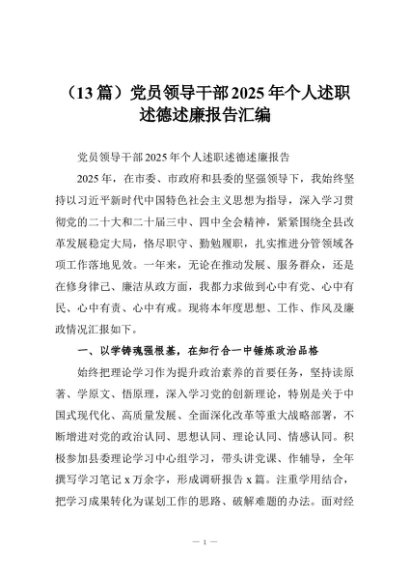 【七哥公文】2025年:(13篇)党员领导干部2025年个人述职述德述廉报告汇编+更多免费公文+VX:QiGeGongWen2024
