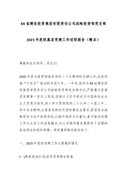 【七哥公文】2025年:XX省建设投资集团有限责任公司战略投资部党支部2025年度抓基层党建工作述职报告(精品)_副本+更多免费公文+VX:QiGeGongWen2024