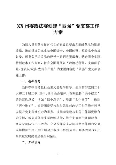 / 【七哥公文】2025年:XX州委政法委创建“四强”党支部工作方案+更多免费公文+VX:QiGeGongWen2024