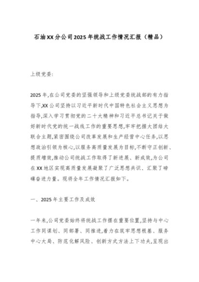 【七哥公文】2025年:石油XX分公司2025年统战工作情况汇报(精品)_副本+更多免费公文+VX:QiGeGongWen2024