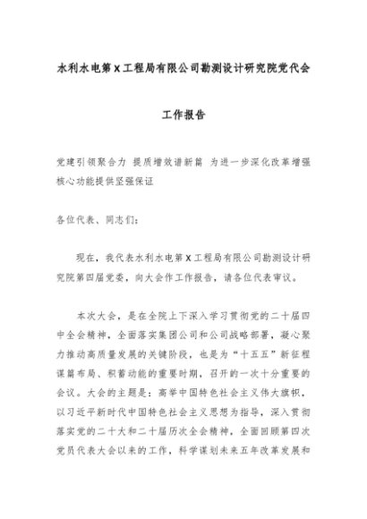【七哥公文】2025年:水利水电第X工程局有限公司勘测设计研究院党代会工作报告_副本+更多免费公文+VX:QiGeGongWen2024