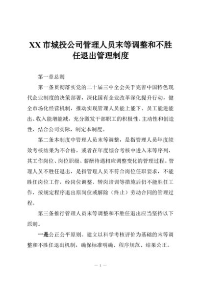 / 【七哥公文】2025年:XX市城投公司管理人员末等调整和不胜任退出管理制度+更多免费公文+VX:QiGeGongWen2024