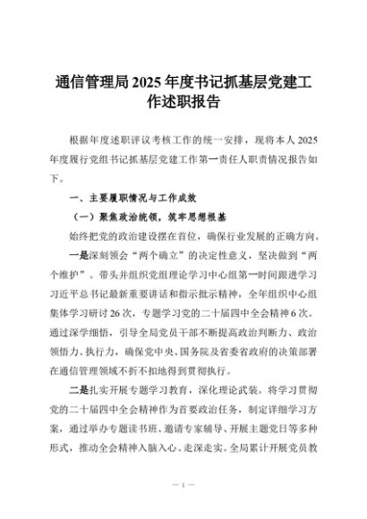 / 【七哥公文】2025年:通信管理局2025年度书记抓基层党建工作述职报告+更多免费公文+VX:QiGeGongWen2024