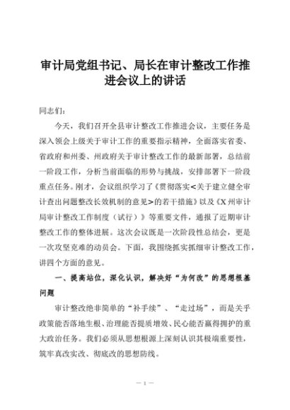 【七哥公文】2025年:审计局党组书记、局长在审计整改工作推进会议上的讲话+更多免费公文+VX:QiGeGongWen2024