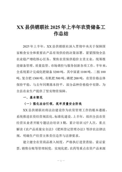 / 【七哥公文】2025年:XX县供销联社2025年上半年农资储备工作总结+更多免费公文+VX:QiGeGongWen2024