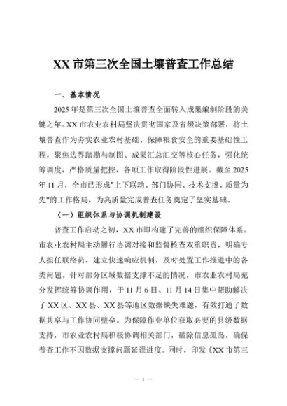 / 【七哥公文】2025年:XX市第三次全国土壤普查工作总结+更多免费公文+VX:QiGeGongWen2024