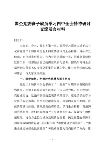 / 【七哥公文】2025年:国企党委班子成员学习四中全会精神研讨交流发言材料+更多免费公文+VX:QiGeGongWen2024