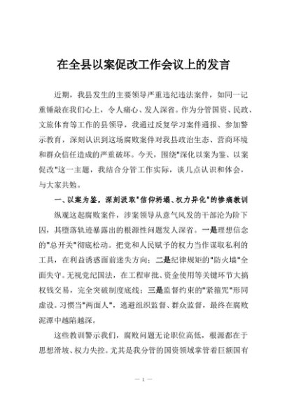 / 【七哥公文】2025年:在全县以案促改工作会议上的发言+更多免费公文+VX:QiGeGongWen2024