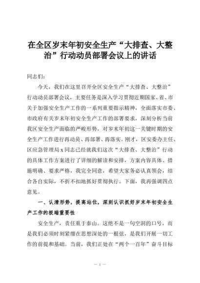 【七哥公文】2025年:在全区岁末年初安全生产“大排查、大整治”行动动员部署会议上的讲话+更多免费公文+VX:QiGeGongWen2024
