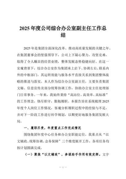 / 【七哥公文】2025年:2025年度公司综合办公室副主任工作总结+更多免费公文+VX:QiGeGongWen2024