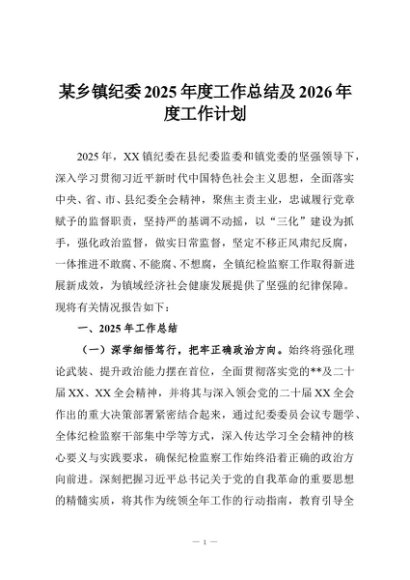 【七哥公文】2025年:某乡镇纪委2025年度工作总结及2026年度工作计划+更多免费公文+VX:QiGeGongWen2024