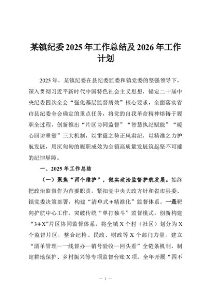 / 【七哥公文】2025年:某镇纪委2025年工作总结及2026年工作计划+更多免费公文+VX:QiGeGongWen2024