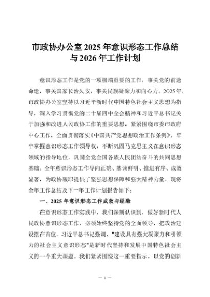 【七哥公文】2025年:市政协办公室2025年意识形态工作总结与2026年工作计划+更多免费公文+VX:QiGeGongWen2024