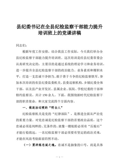 【七哥公文】2025年:县纪委书记在全县纪检监察干部能力提升培训班上的党课讲稿+更多免费公文+VX:QiGeGongWen2024