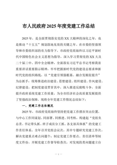 / 【七哥公文】2025年:市人民政府2025年度党建工作总结+更多免费公文+VX:QiGeGongWen2024
