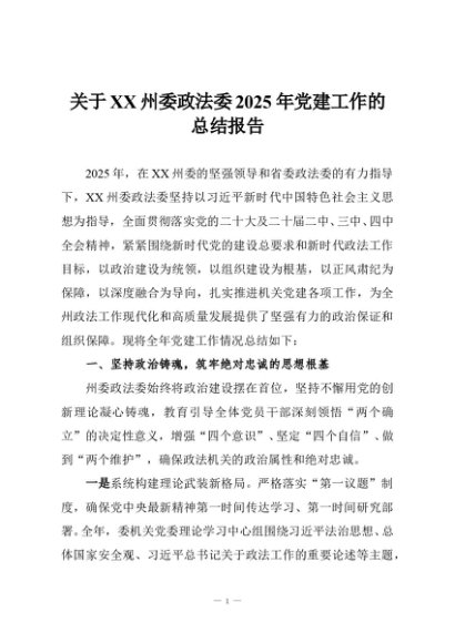 / 【七哥公文】2025年:关于XX州委政法委2025年党建工作的总结报告+更多免费公文+VX:QiGeGongWen2024