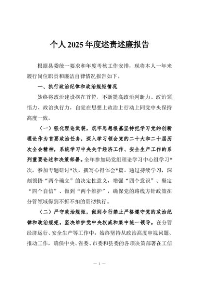 / 【七哥公文】2025年:个人2025年度述责述廉报告+更多免费公文+VX:QiGeGongWen2024
