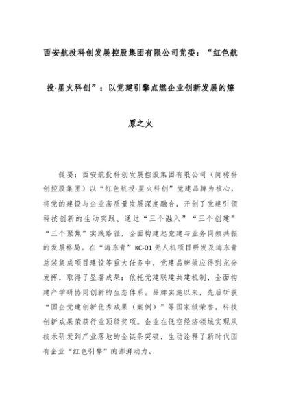 【七哥公文】2025年:西安航投科创发展控股集团有限公司党委:“红色航投·星火科创”:以党建引擎点燃企业创新发展的燎原之火_副本+更多免费公文+VX:QiGeGongWen2024