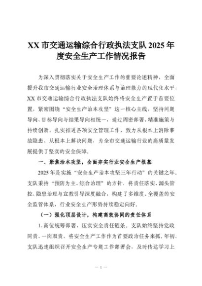 【七哥公文】2025年:XX市交通运输综合行政执法支队2025年度安全生产工作情况报告+更多免费公文+VX:QiGeGongWen2024