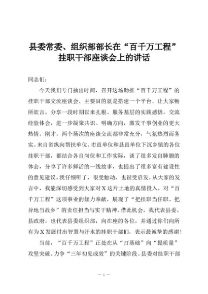 【七哥公文】2025年:县委常委、组织部部长在“百千万工程”挂职干部座谈会上的讲话+更多免费公文+VX:QiGeGongWen2024