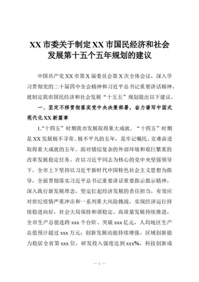 【七哥公文】2025年:XX市委关于制定XX市国民经济和社会发展第十五个五年规划的建议+更多免费公文+VX:QiGeGongWen2024