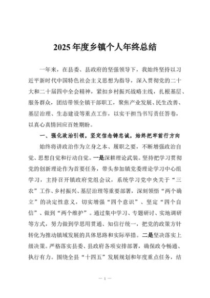 / 【七哥公文】2025年:2025年度乡镇个人年终总结+更多免费公文+VX:QiGeGongWen2024