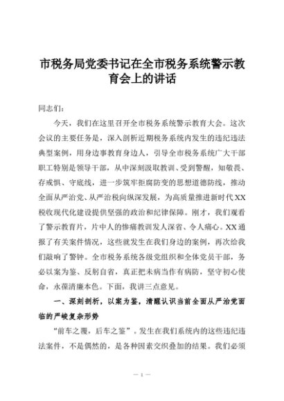 / 【七哥公文】2025年:市税务局党委书记在全市税务系统警示教育会上的讲话+更多免费公文+VX:QiGeGongWen2024