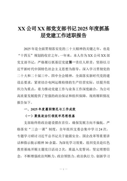 【七哥公文】2025年:XX公司XX部党支部书记2025年度抓基层党建工作述职报告+更多免费公文+VX:QiGeGongWen2024