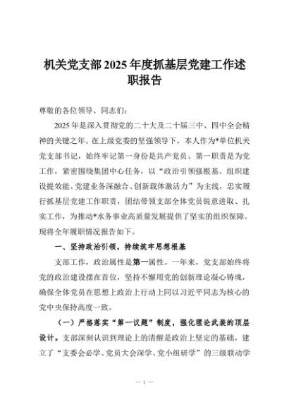 / 【七哥公文】2025年:机关党支部2025年度抓基层党建工作述职报告+更多免费公文+VX:QiGeGongWen2024