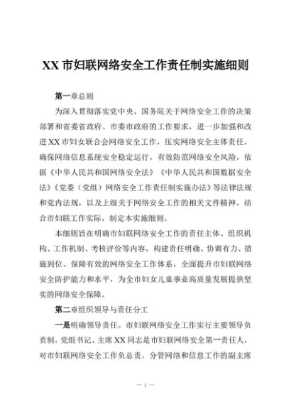 / 【七哥公文】2025年:XX市妇联网络安全工作责任制实施细则+更多免费公文+VX:QiGeGongWen2024