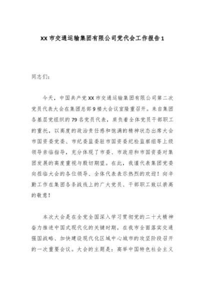 【七哥公文】2025年:XX市交通运输集团有限公司党代会工作报告1_副本+更多免费公文+VX:QiGeGongWen2024