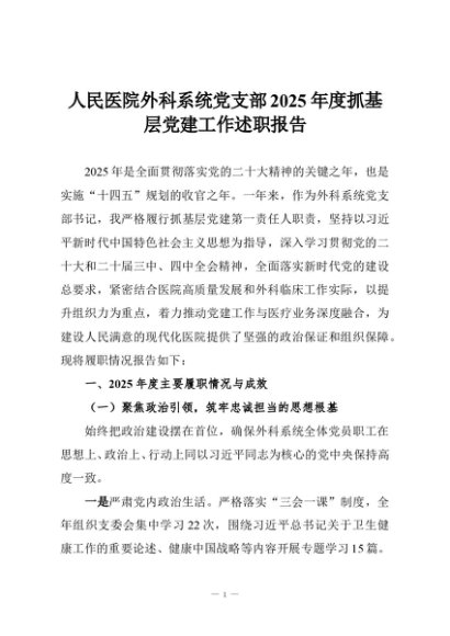 【七哥公文】2025年:人民医院外科系统党支部2025年度抓基层党建工作述职报告+更多免费公文+VX:QiGeGongWen2024