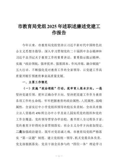 / 【七哥公文】2025年:市教育局党组2025年述职述廉述党建工作报告+更多免费公文+VX:QiGeGongWen2024