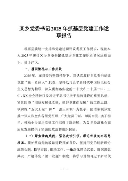/ 【七哥公文】2025年:某乡党委书记2025年抓基层党建工作述职报告+更多免费公文+VX:QiGeGongWen2024