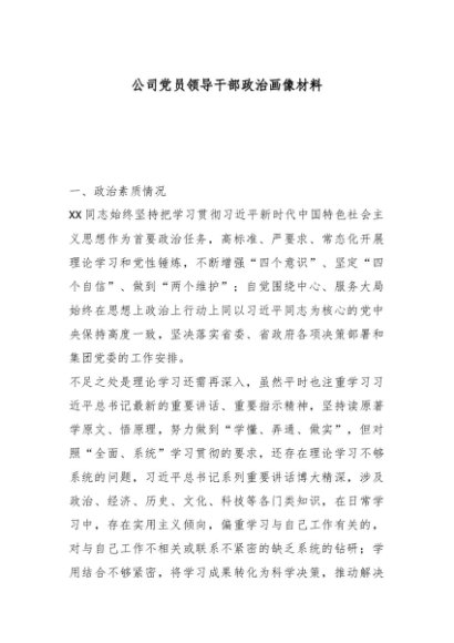 / 【七哥公文】2025年:公司党员领导干部政治画像材料_副本+更多免费公文+VX:QiGeGongWen2024