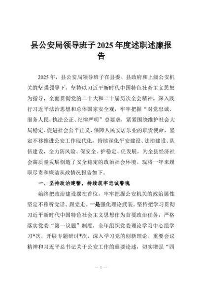 / 【七哥公文】2025年:县公安局领导班子2025年度述职述廉报告+更多免费公文+VX:QiGeGongWen2024