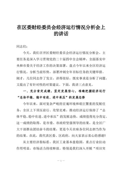 / 【七哥公文】2025年:在区委财经委员会经济运行情况分析会上的讲话+更多免费公文+VX:QiGeGongWen2024