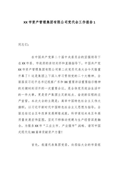 【七哥公文】2025年:XX市资产管理集团有限公司党代会工作报告1_副本+更多免费公文+VX:QiGeGongWen2024