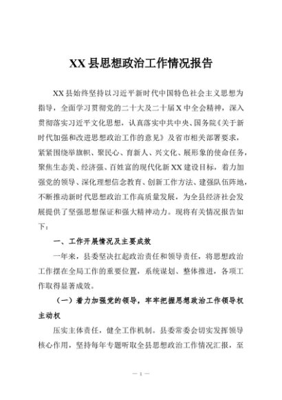 / 【七哥公文】2025年:XX县思想政治工作情况报告+更多免费公文+VX:QiGeGongWen2024