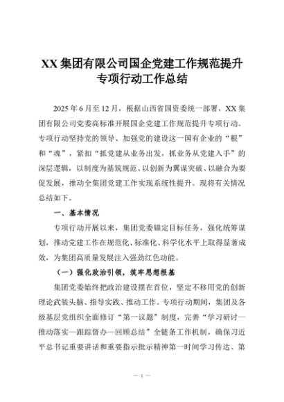 【七哥公文】2025年:XX集团有限公司国企党建工作规范提升专项行动工作总结+更多免费公文+VX:QiGeGongWen2024