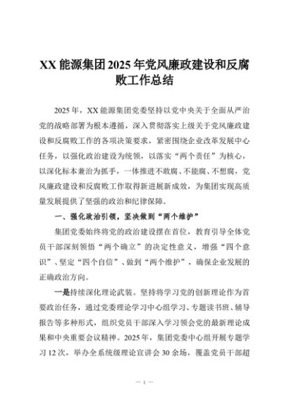 / 【七哥公文】2025年:XX能源集团2025年党风廉政建设和反腐败工作总结+更多免费公文+VX:QiGeGongWen2024