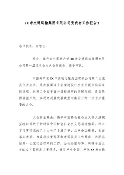 【七哥公文】2025年:XX市交通运输集团有限公司党代会工作报告2_副本+更多免费公文+VX:QiGeGongWen2024
