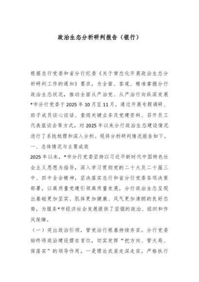 / 【七哥公文】2025年:政治生态分析研判报告(银行)_副本+更多免费公文+VX:QiGeGongWen2024