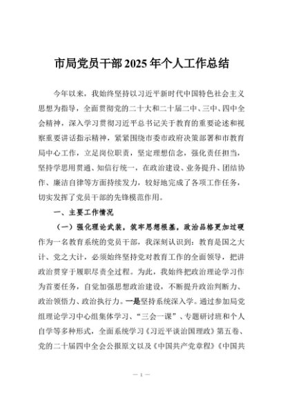 / 【七哥公文】2025年:市局党员干部2025年个人工作总结+更多免费公文+VX:QiGeGongWen2024