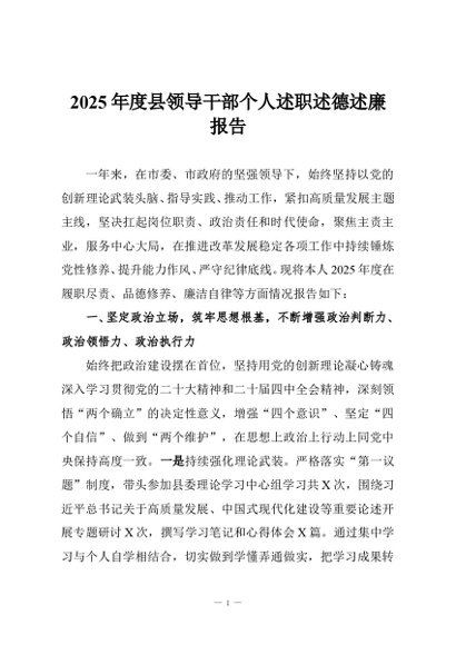 / 【七哥公文】2025年:2025年度县领导干部个人述职述德述廉报告+更多免费公文+VX:QiGeGongWen2024