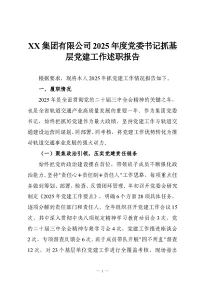【七哥公文】2025年:XX集团有限公司2025年度党委书记抓基层党建工作述职报告+更多免费公文+VX:QiGeGongWen2024
